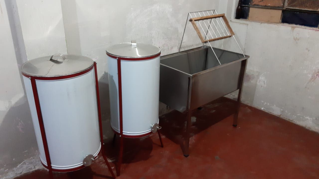 Mesa desperculadora con pata y rejilla y banca de soporte en acero inoxidable calidad 201satinado. Plancha de 1milimetro acabado sanitario en proceso TIG. 80cm de largo y alto 75cm.